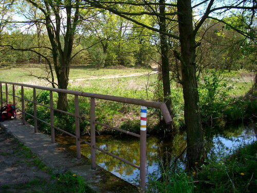 Szlak jest nadal dobrze oznakowany i bezpiecznie przeprowadza nas przez leśny teren. Kilka chwil później docieramy do drogi asfaltowej Międzychód – Kolno, którą przecinamy. Znów zanurzamy się w las aby po niedługim czasie dotrzeć do mostku na Kamionce.