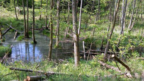 Do tablicy nr 7: Jakie to drzewo? dotarliśmy ścieżynką wzdłuż wspomnianego już cieku wodnego. Trasa bardzo atrakcyjna, naznaczona zajmującymi widokami. Było to jednak jeszcze nic w porównaniu z widokami przy tablicy nr 8: Bobry. Kolejny mosteczek i już przy niej byliśmy. Oj było warto dotrzeć tu, aby choć przez chwilę rzucić okiem na te uroczyska.