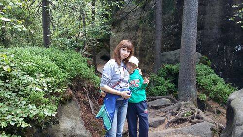 Zaczęliśmy swą powolną drogę na szczyt. Przystanki co czterdzieści schodków okazały się dobrym pomysłem. Oprócz odpoczynku dawały nam one możliwość podziwiania piękna dzikiej przyrody Parku Narodowego Gór Stołowych. Michał zafascynowany a i rodzice pod wielkim wrażeniem.