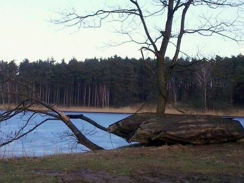 Na plaży robimy krótki postój, po czym zgodnie ze znakami szlaku idziemy dalej. Mijamy znane nam doskonale tereny, które jednak sporo się zmieniły. Wycinka drzew trwa w najlepsze i niestety miejscami zamiast śródleśną ścieżką kroczymy terenami zupełnie ogołoconymi z drzew. Przykry widok.