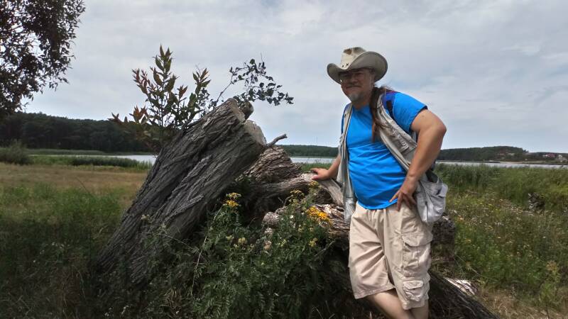 Dochodzimy do jeziora radgoskiego, które na tle wszechobecnych tu lasów Puszczy prezentuje się wyjątkowo malowniczo. Do tego jeziora mamy wyjątkowy sentyment. To właśnie na polu namiotowym przy tym jeziorze poznaliśmy się z Anią. 14 lat temu. Oj, ucieka ten czas, ucieka.