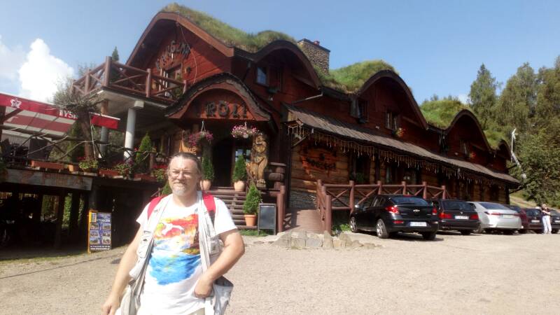 Pora nie była jeszcze późna, słoneczko grzało na całego, śmiało ruszyliśmy jeszcze zatem rozejrzeć się po najbliższej okolicy. Byliśmy m.in. przy pomniku poświęconym Obrońcom Cisnej przed UPA, zawitaliśmy do skrytej pod mchem karczmy Troll, wpadliśmy także do sławnej aczkolwiek trochę mrocznej Siekierezady. Sporo czasu zajął nam też spacer wzdłuż brzegu Solinki. Wróciliśmy do naszej Chatki z Bali krótko przed zachodem słońca. A potem zajęliśmy się pałaszowaniem przygotowanej na szybko kolacji na tarasie Chatki. Tak, Chatka miała taras i to z przepięknym widokiem na góry. A jutro, po porządnie przespanej nocy jedziemy nad Solinę. I oby pogoda dopisała.