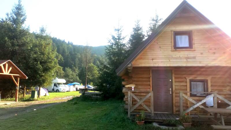 Po słusznej rejteradzie z Bacówki Pod Honem meldujemy się "na dole" w Cisnej, na polu namiotowo-campingowym TRAMP, gdzie udało się nam załatwić pokój. Pokój, który okazał się przestronną Chatką z Bali, z aneksem kuchennym, toaletą, prysznicem i wygodnymi łóżkami. Gdybyśmy wylądowali tu już wczoraj, nasza przygoda z Bieszczadami byłaby zupełnie inna. Bardzo żałujemy, że nie nawialiśmy z Bacówki dużo wcześniej. Ale jak to mówią "mądry Polak po szkodzie"'
