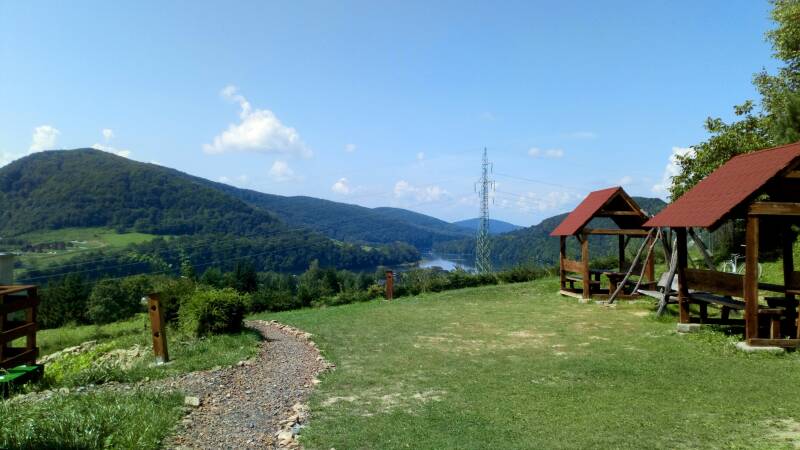 Miejsce naszego pobytu okazuje się wyśmienite. Pokój jest nieduży ale ze wspaniałym widokiem na solińską zaporę i otaczające je wzgórza. I do tego właściciele okazują się przesympatyczni (ogromna, po Honie, odmiana). Jeżeli ktoś będzie szukał fajnego miejsca na pobyt nad Soliną, chętnie podpowiemy.