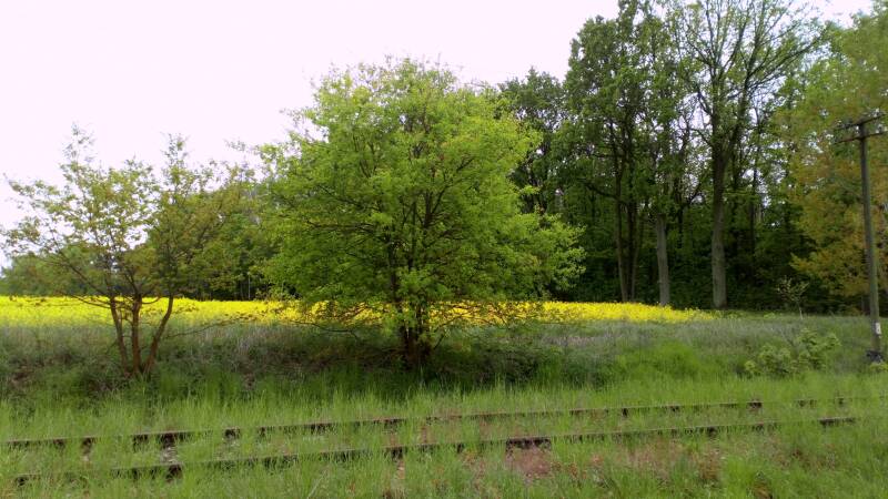 Do rozstaju dróg z krzyżem docieramy szybko i bezproblemowo idąc wzdłuż drogi asfaltowej. Wchodząc w polną drogę prowadzącą do jeziora Tuczno i dalej do Strych dzwonimy do kolegi Pawła ze Strych, z którym to byliśmy wcześniej umówieni na ognisko. Okazuje się, że Paweł jest już na polu namiotowym. W międzyczasie zbierają się jednak potężne chmury, Stwierdzamy, że chyba jednak warto znaleźć jakieś miejsce, które da nam chociażby prowizoryczne schronienie przed nadchodzącą ulewą. W pobliżu dzikiej plaży nad jeziorem Tuczno jest stary, dość szeroki wiadukt kolejowy, który jako tymczasowe schronienie nada się wyśmienicie. Wiadukt ukryty w gęstych zaroślach jest prawie niewidoczny z drogi i niewiele osób wie w ogóle o jego tu bytności. Dzwonimy jeszcze raz do Pawła, żeby jednak podszedł nad Tuczno. Paweł nie widzi problemu, podejdzie.
