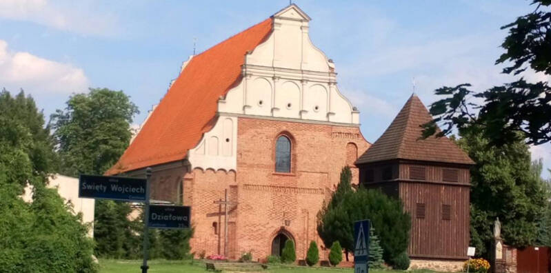 Z dokumentów pośrednio wynika, iż kościół wzniesiono w roku 1222. Według podania świątynia wzniesiona została w miejscu, gdzie św. Wojciech wygłosił kazanie przed udaniem się z wyprawą misyjną do Prus i gdzie prawdopodobnie od wieku XI znajdowała się drewniana kaplica.